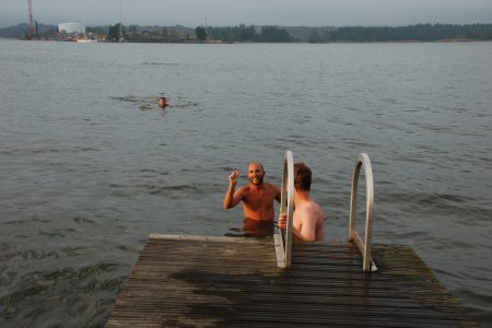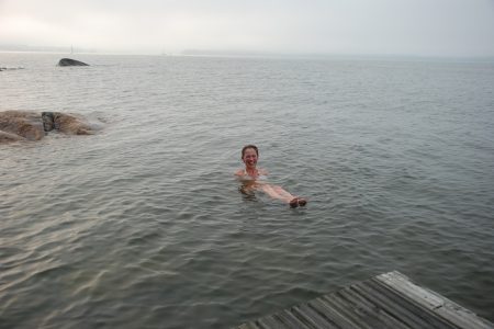 Seuraavana päivänä jatkettiin FMID -kurssia ja illalla lähdettiin saunasaareen rentoutumaan. Savusauna, meri, palju ja loimulohi kruunasivat utuisen ja kauniin illan. Kurssilaiset kokoontuivat Kauppatorin rantaan, mistä lähdettiin vesitaksilla Saunasaareen.