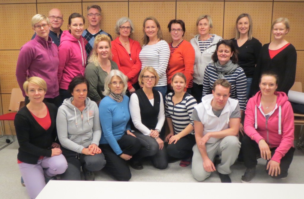 Lokakuussa alkoivat FM-taso I kurssit Fuerteventuran lisäksi Varalassa ja Kokkolassa ja taso II aloitettiin Turussa Lounais-Suomen fysioterapeuttien järjestämänä. Kuvassa yhdistetty Fuerteventuran ja Varalassa lokakuun alussa aloittanut kurssi, taso I on nyt suoritettu.