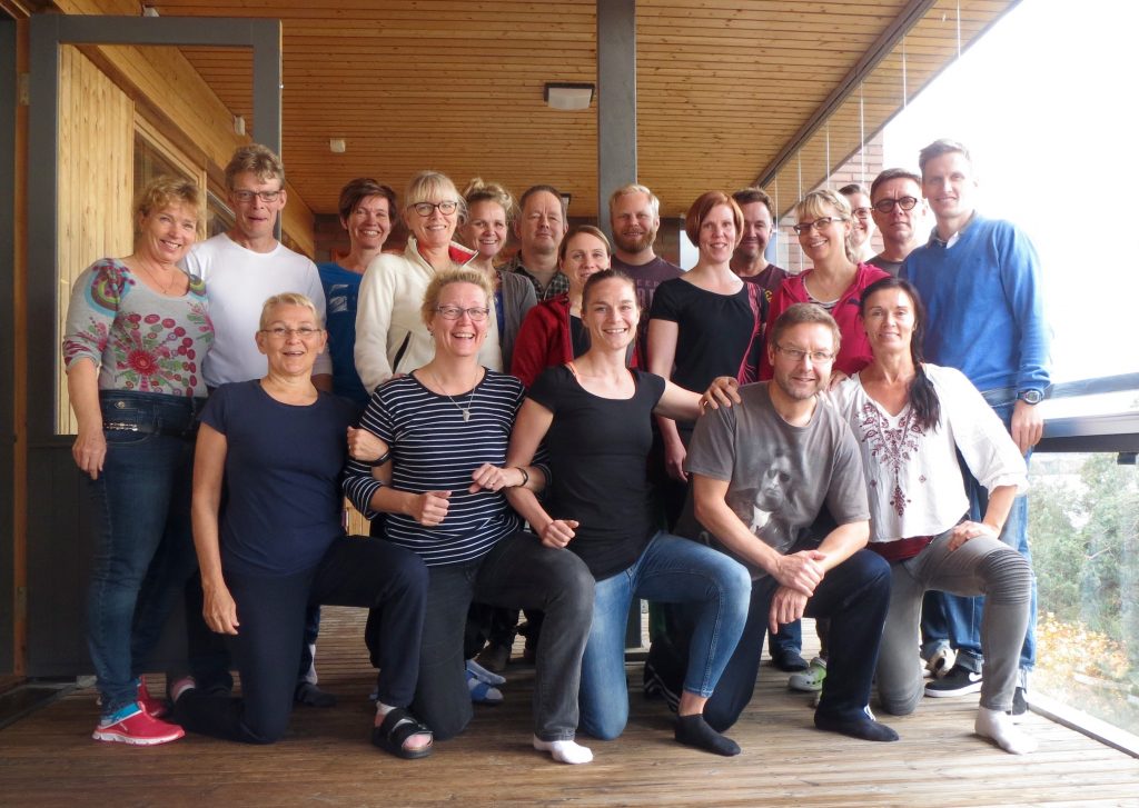 FM I-kurssilla Varalassa. 18 fysioterapeuttia opettelemassa faskiamanipulaatiota mukana eri alojen taitajia mm. ammattimuusikko, psykoterapeutti, lymfaterapiaopettaja, ft-opettaja. Ensimmäinen jakso herätti hyviä keskusteluja motoriikasta, kivuista ja herkistymisistä. Varalasta matka jatkui Kokkolaan, missä Juhannuksen alla FM II tason aloittanut ryhmä jatkoi opiskelua ja niin vinhaa vauhtia edettiin loppuun, että kurssikuva jäi ottamatta. kokkolasta juna vei Ouluun, missä tammipakkasilla FM I:n aloittanut fysioterapeuttien ryhmä jatkoi II -tasolle ja aloimme opetella fuusiokeskuksia ja syventää kliinisen päättelyn taitoja sekä laajentaa liikemalleja tasosta toiseen.